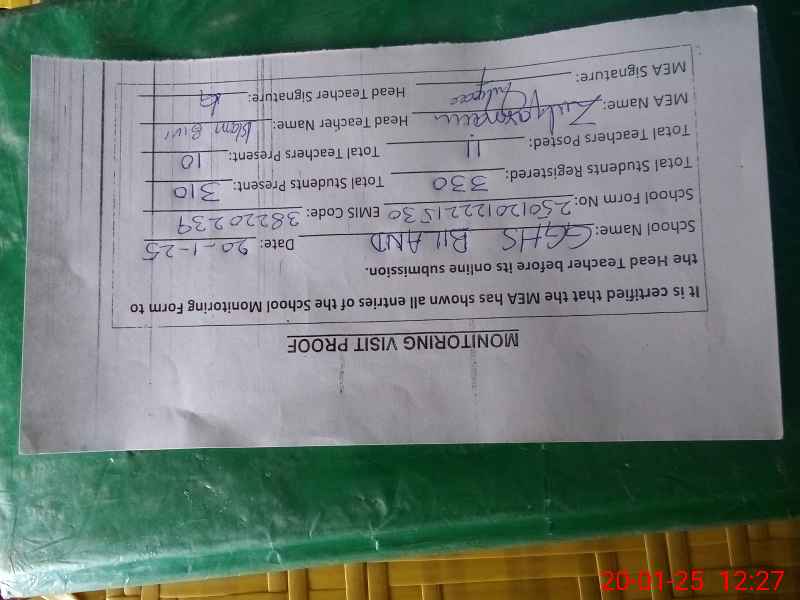 | EMIS Code: 38220239 | Name of School: GGHS BILAND | |||