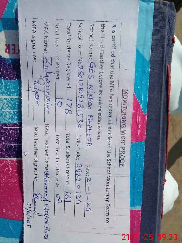 | Attendance Register | Head Teacher | MEA with School | Visit Proof |