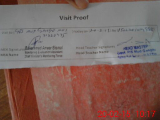 | Attendance Register | Head Teacher | MEA with School | Visit Proof |