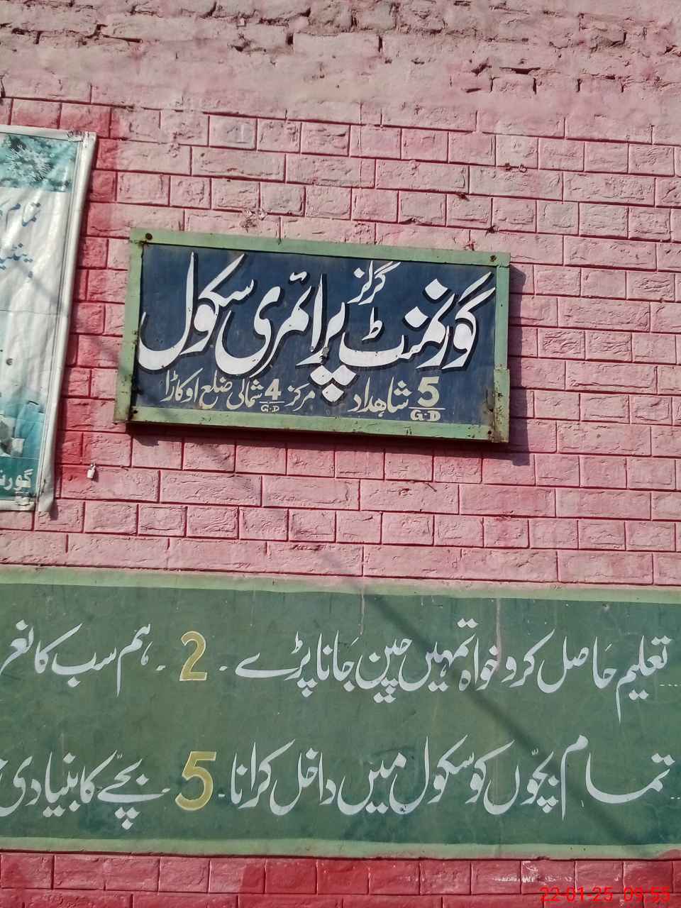 | District: OKARA | Tehsil: RENALA KHURD | Markaz: 4/GD - FEMALE | Level: Primary | |