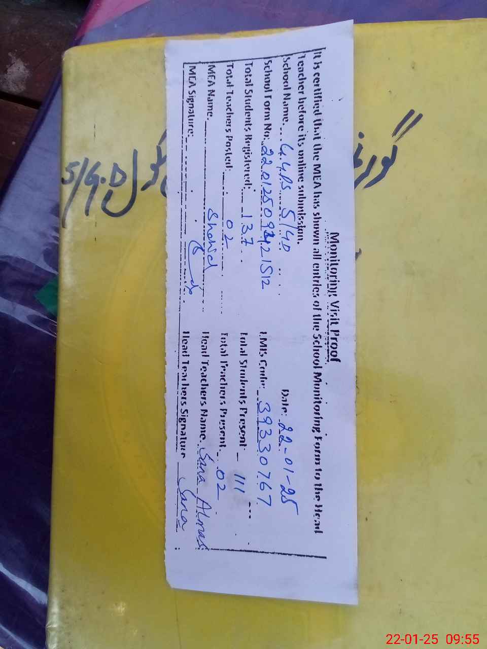 | EMIS Code: 39330767 | Name of School: GGPS CHAK NO. 5/G.D | |||