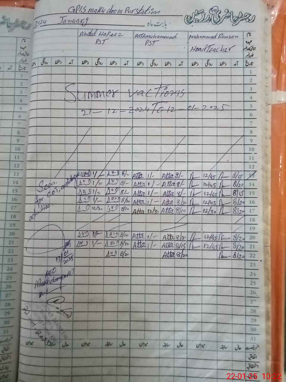 | Name: M.**** Designation: (School Headmaster's/Headmistress's) PST Phone/Cell Number: 03**** |