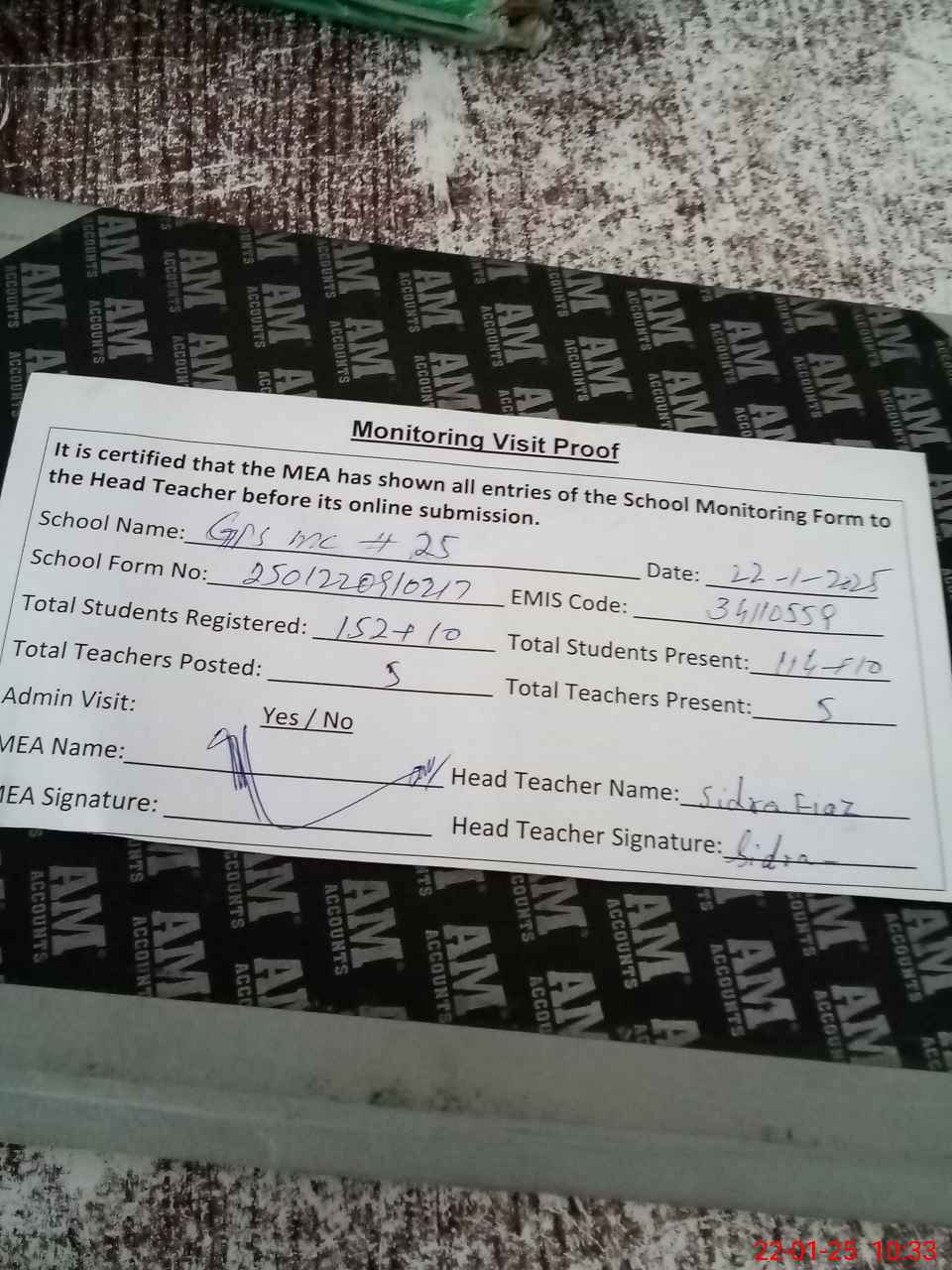 | EMIS Code: 34110559 | Name of School: GPS MC NO.25 | |||