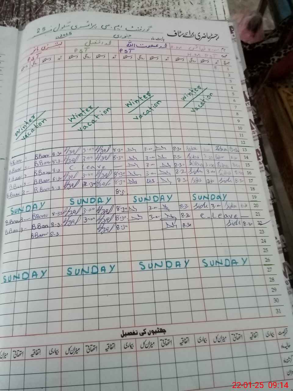 | CNIC | Full Name | Designation | R/C | Absence During Last Calender Month |