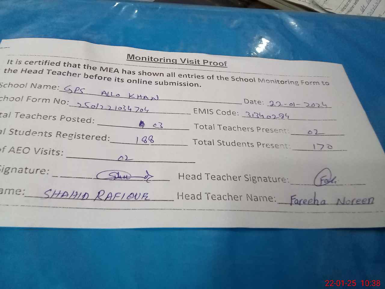 | EMIS Code: 31340284 | Name of School: GPS ALLO KHAN | |||