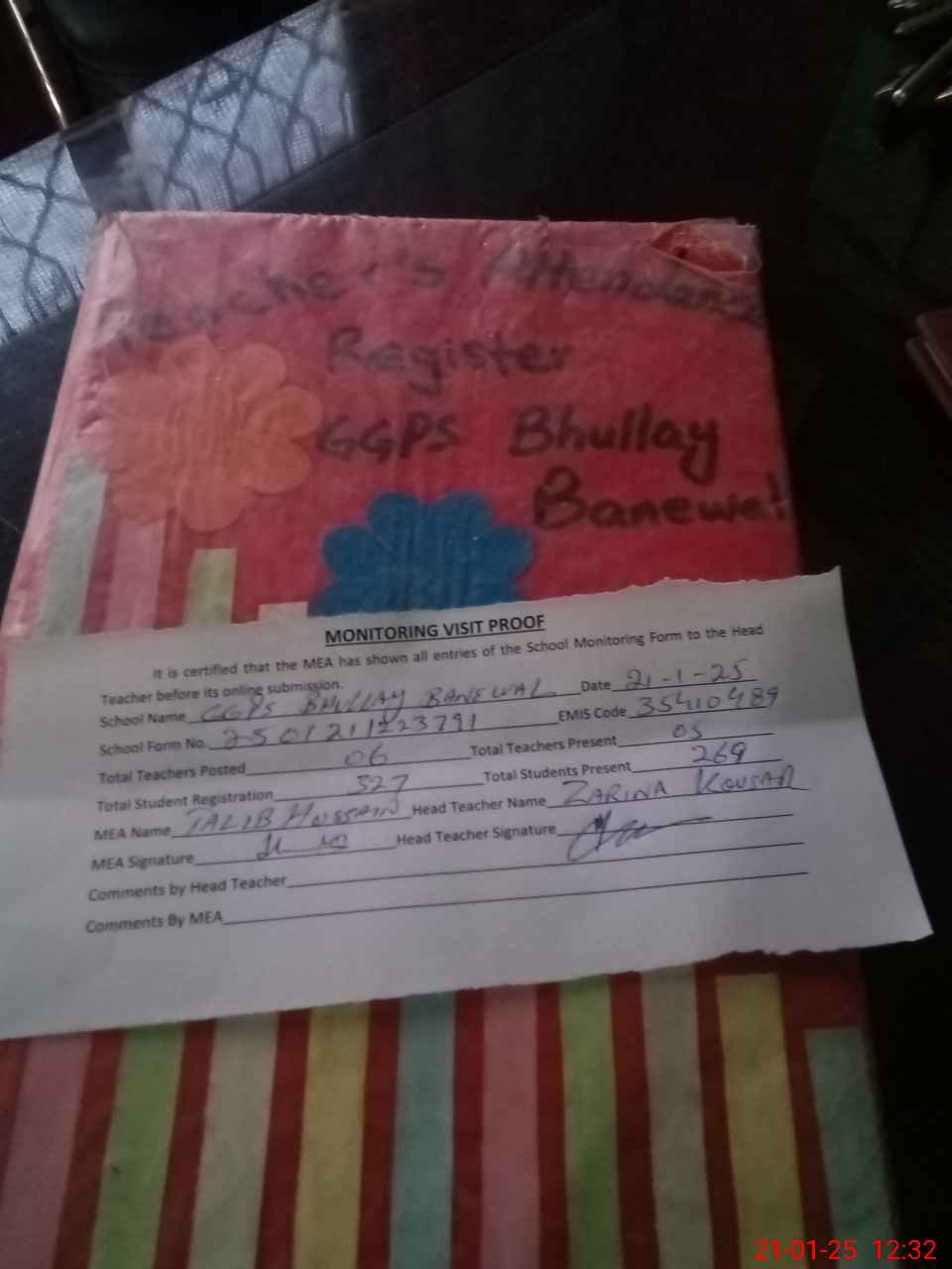 | EMIS Code: 35410489 | Name of School: GGPS BHULAY BANEWAL | |||