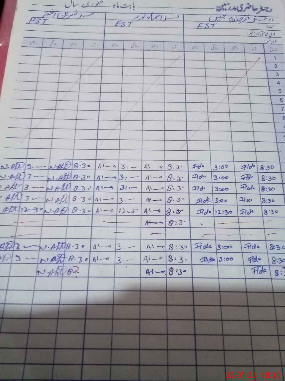| CNIC | Full Name | Designation | R/C | Absence During Last Calender Month |