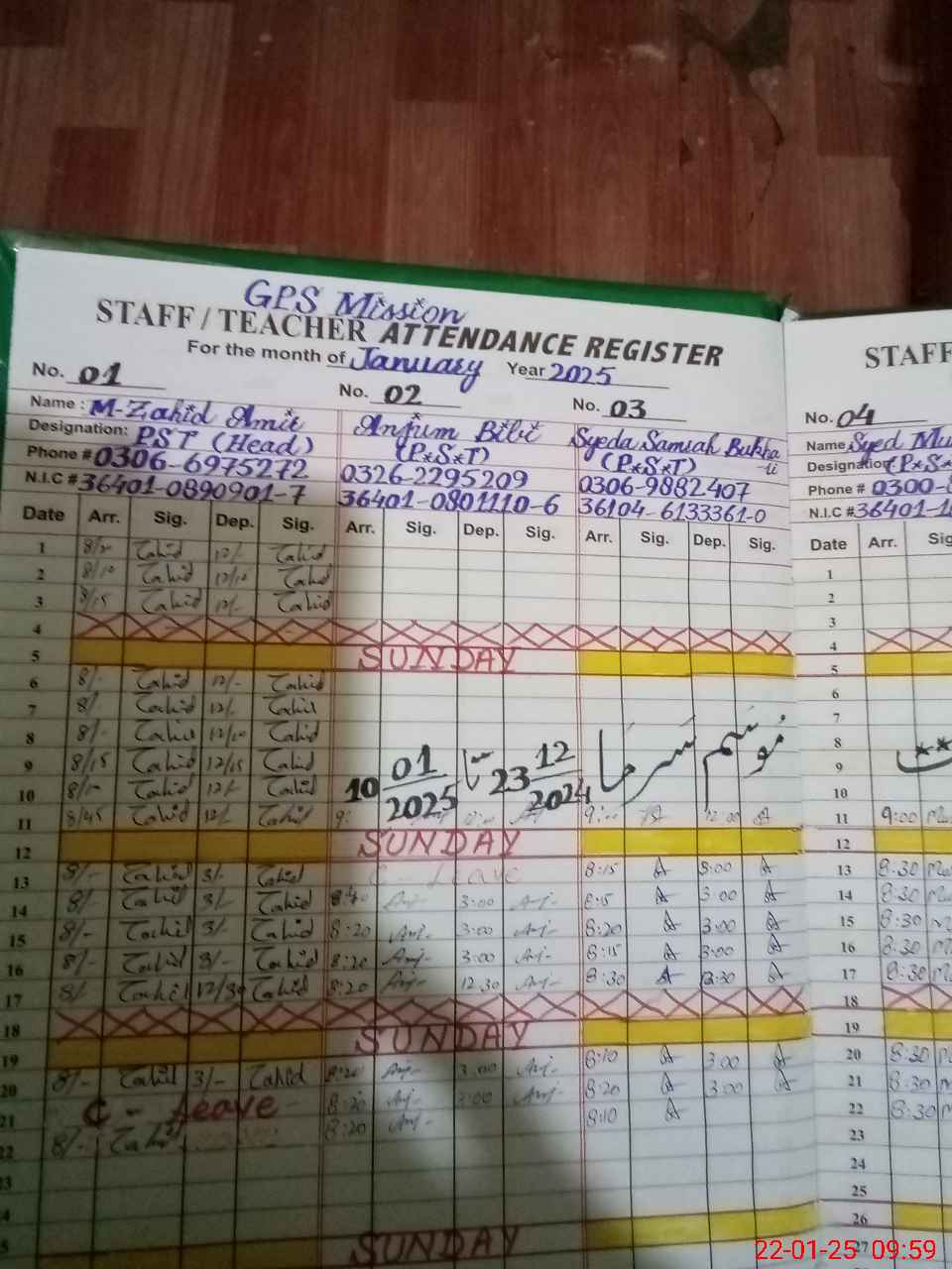 | Name: SY**** MU**** ULHA**** Designation: (School Headmaster's/Headmistress's) PST Phone/Cell Number: 03**** |