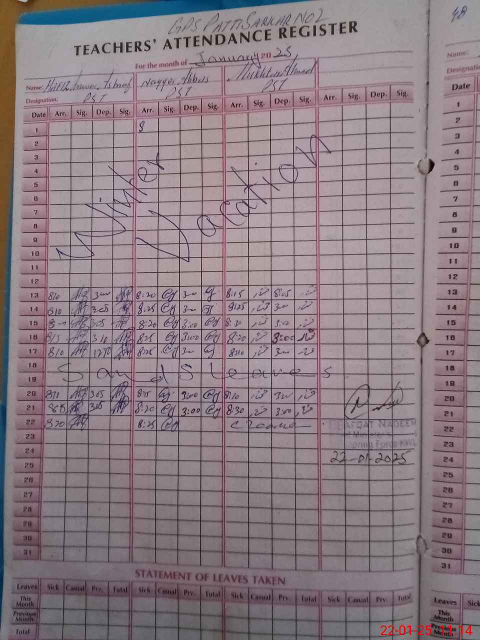 | Name: HA**** MU**** AN**** AS**** Designation: (School Headmaster's/Headmistress's) PST Phone/Cell Number: 03**** |