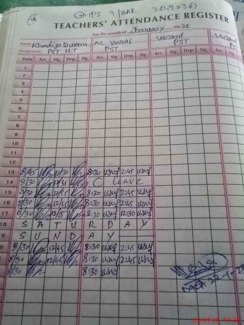 | Name: KH**** DU**** Designation: (School Headmaster's/Headmistress's) PST/PTC/JV Phone/Cell Number: 03**** |