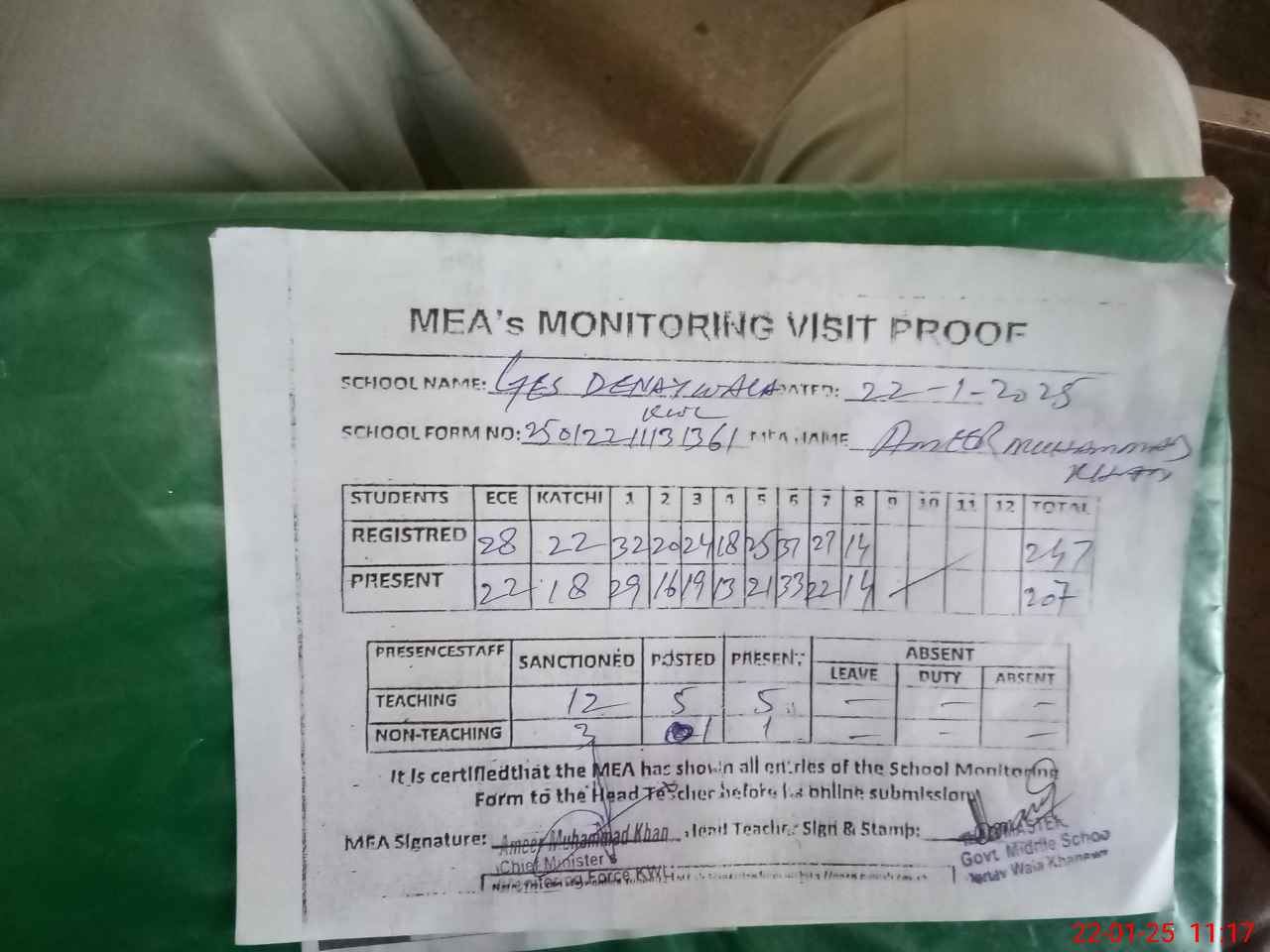 | EMIS Code: 36420072 | Name of School: GES DENAY WALA, KHANEWAL | |||