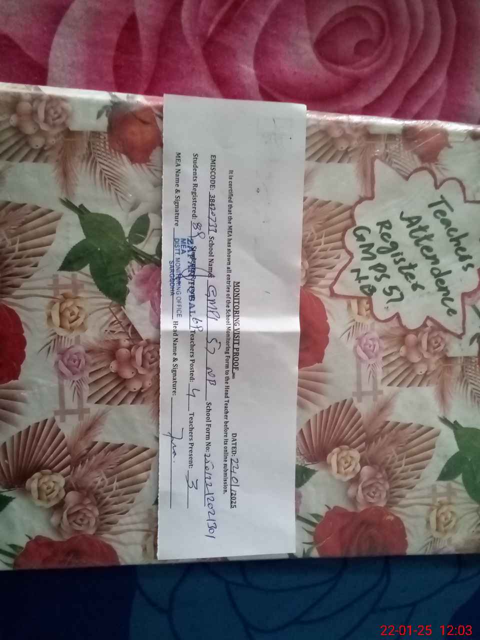 | Attendance Register | Head Teacher | MEA with School | Visit Proof |