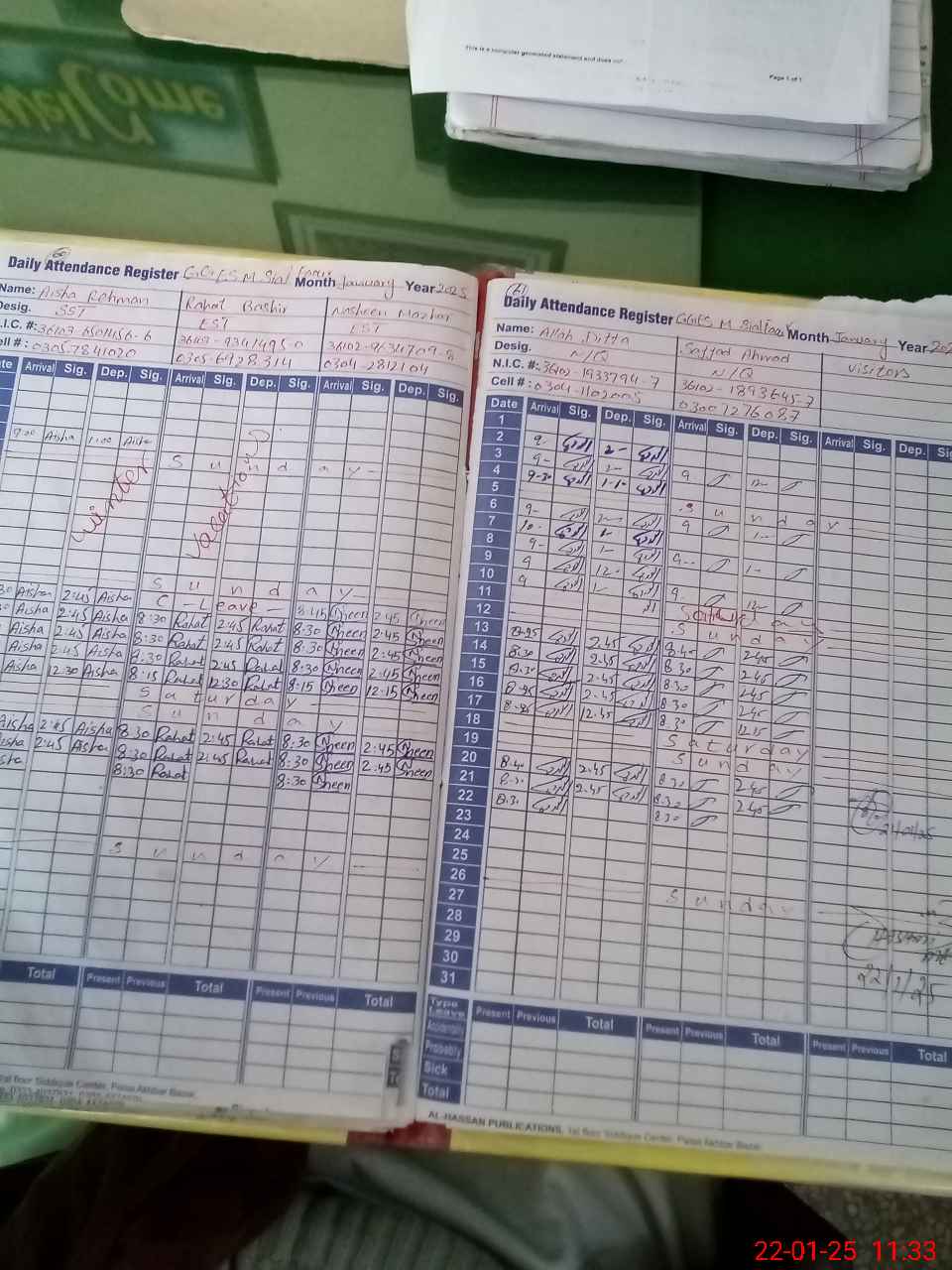 | CNIC | Full Name | Designation | R/C | Absence during last cal. month |
