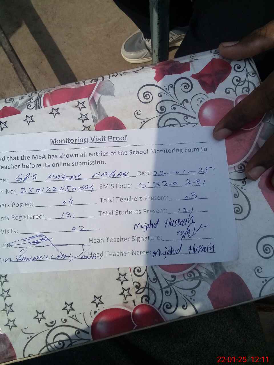 | Attendance Register | Head Teacher | MEA with School | Visit Proof |