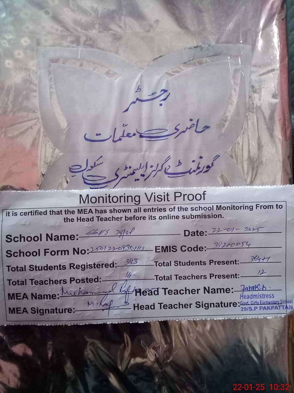 | EMIS Code: 39210054 | Name of School: GGES 29 SP | |||