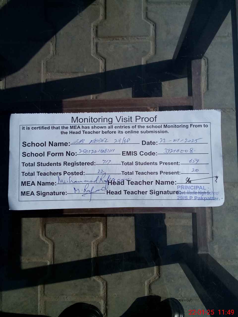 | EMIS Code: 39210008 | Name of School: GHS MODEL 29/SP PAKPATAN | |||