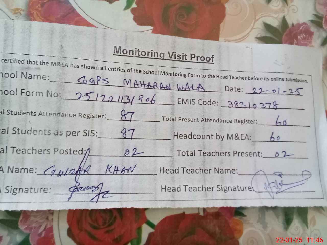 | EMIS Code: 38310378 | Name of School: GGPS MAHARAN WALA | |||