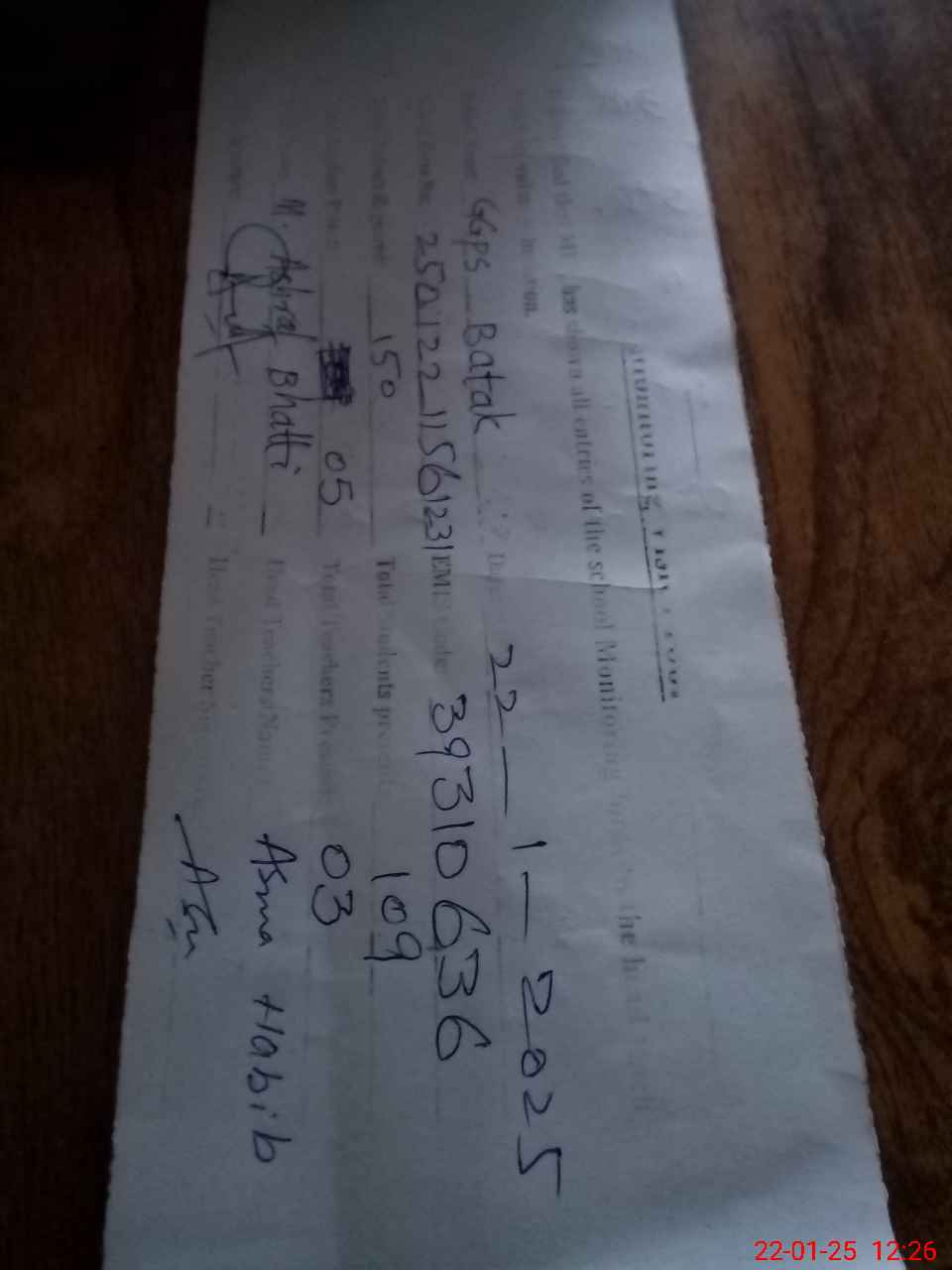 | Name: Za**** An**** Designation: (School Headmaster's/Headmistress's) PST Phone/Cell Number: 03**** |