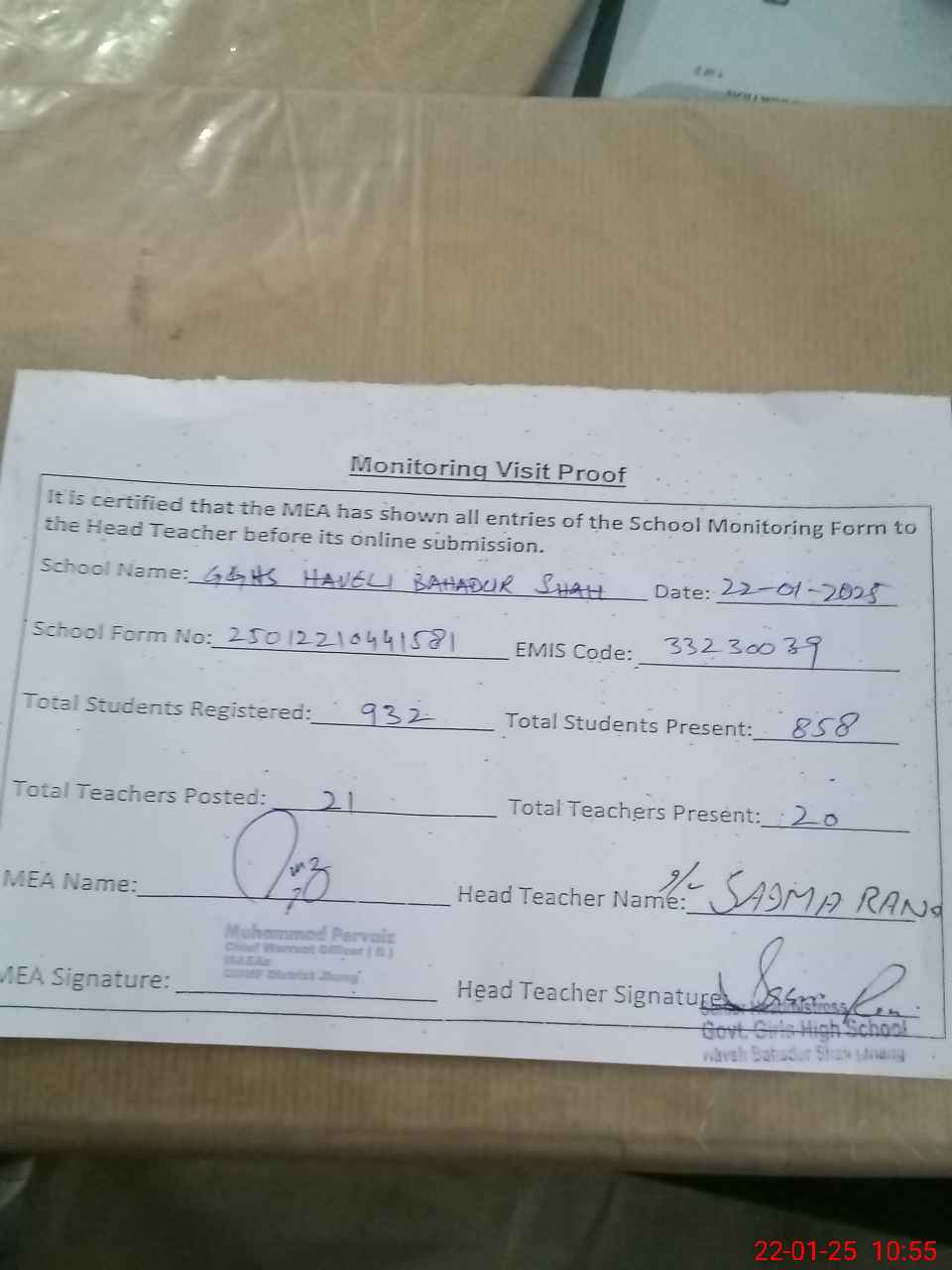 | EMIS Code: 33230039 | Name of School: GGHS HAVELI BAHADAR SHAH | |||