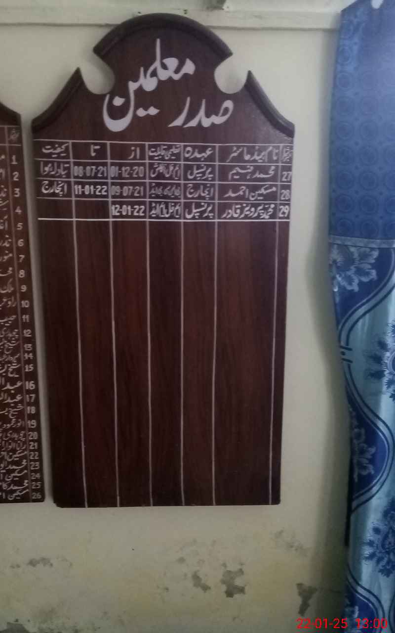 | Name: Mu**** Pe**** Qa**** Designation: (School Headmaster's/Headmistress's) Sr Head Master Phone/Cell Number: 03**** |