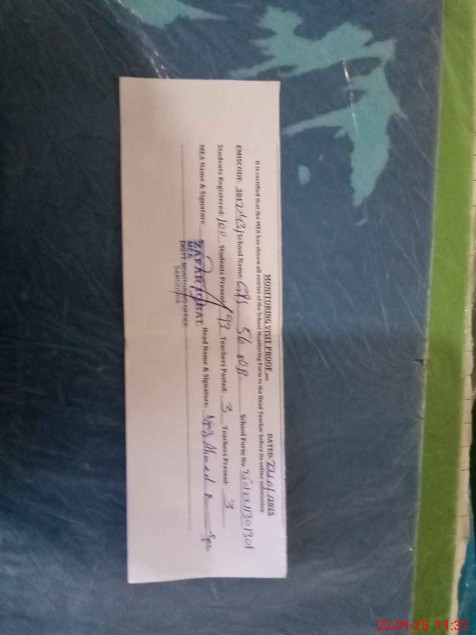 | Attendance Register | Head Teacher | MEA with School | Visit Proof |