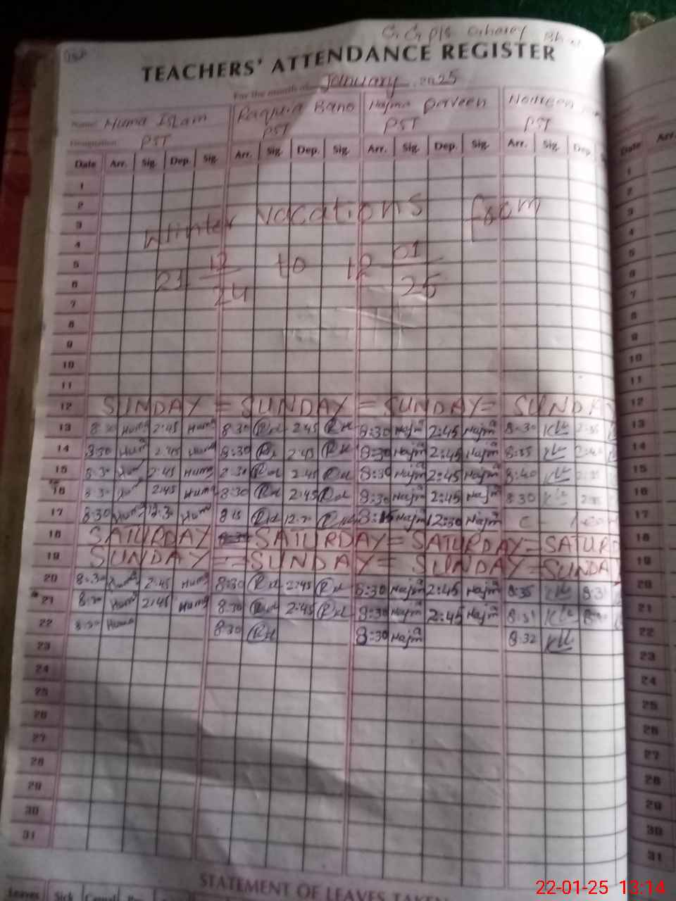| Monitoring Date: 22-01-2025 | Start Time: 22-01-2025 12:31 PM | End Time: 22-01-2025 01:18 PM | Name of MEA: Sh**** Na**** | |