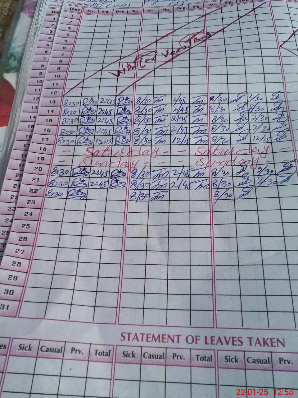 | CNIC | Full Name | Designation | R/C | Absence During Last Calender Month |
