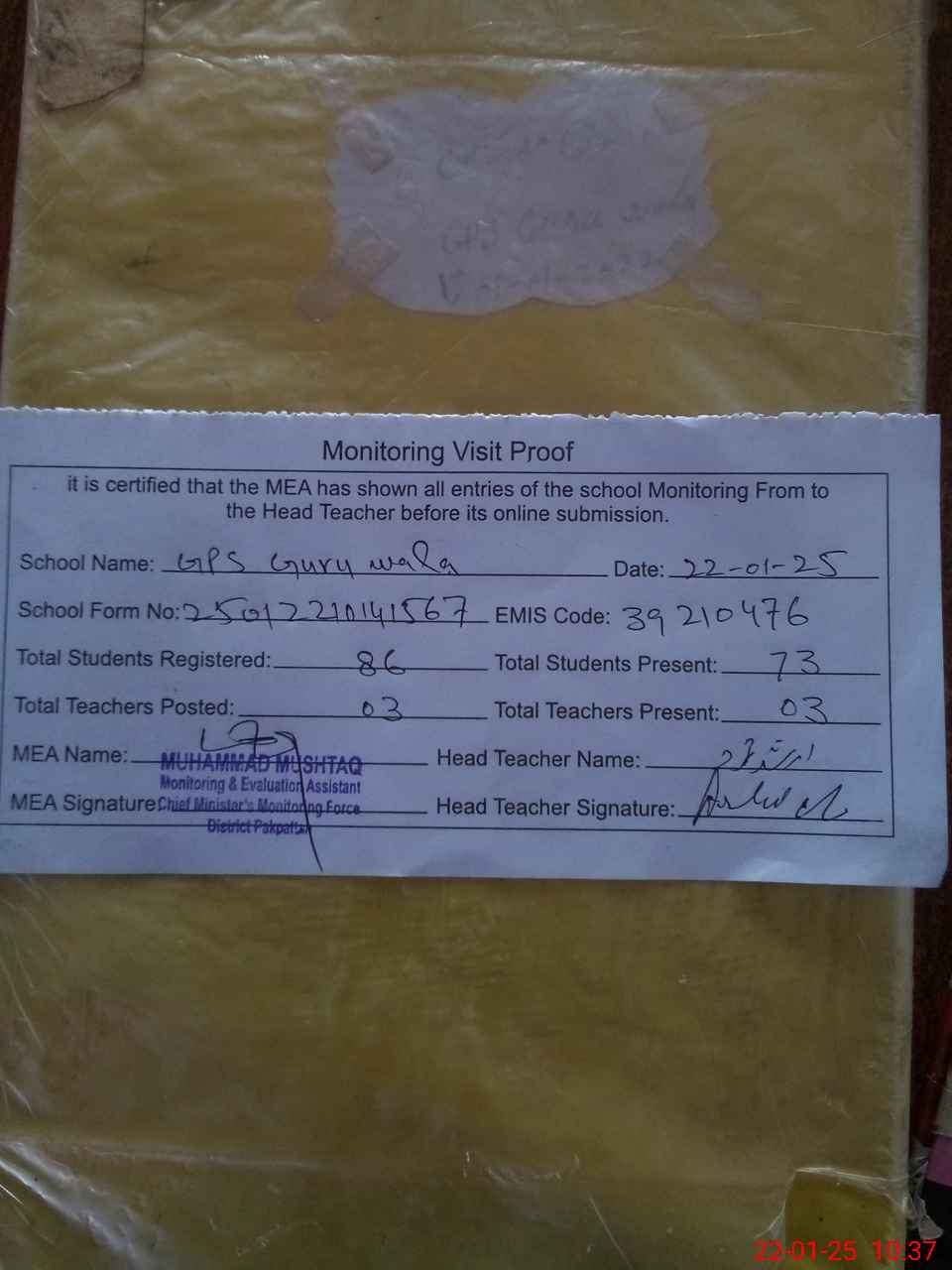 | EMIS Code: 39210476 | Name of School: GPS GURU WALA | |||