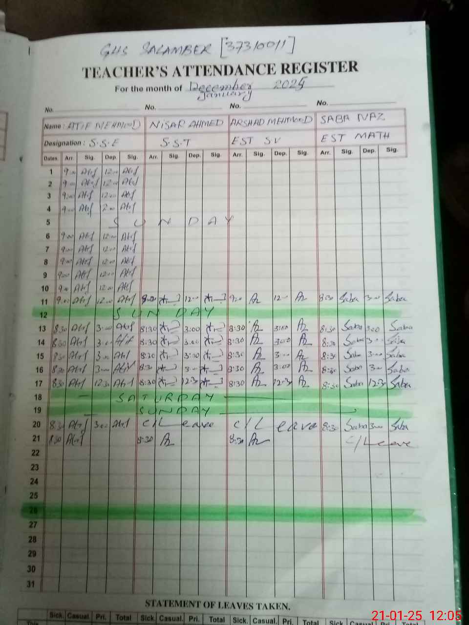 | 37**** | Sa**** Na**** | EST | Regular | 0 | 0 | 0 | 0 | 0 | 0 | 0 | 0 | 0 | Casual |