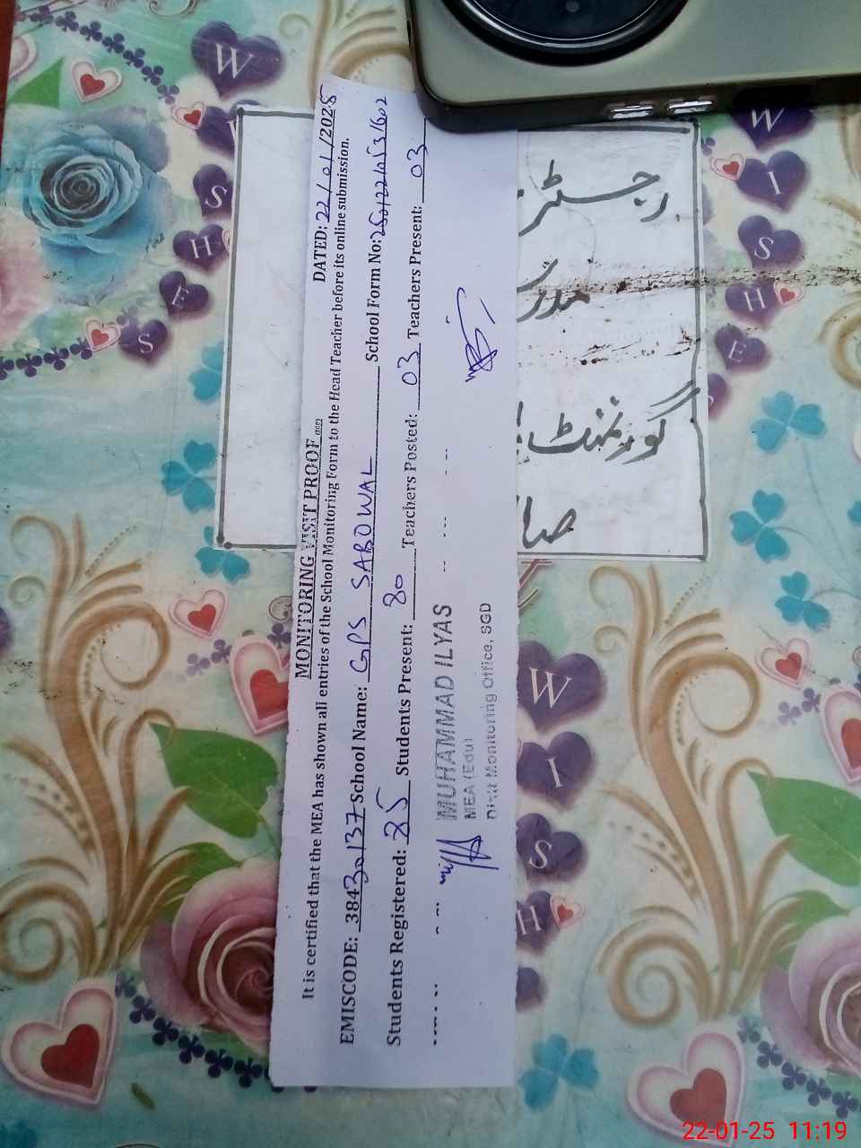 | EMIS Code: 38430137 | Name of School: GPS SABOWAL | |||