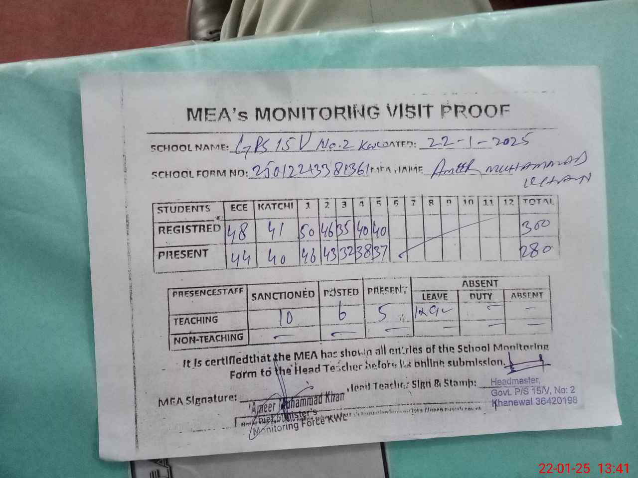 | EMIS Code: 36420198 | Name of School: GPS 15/V NO.2 KHANEWAL | |||