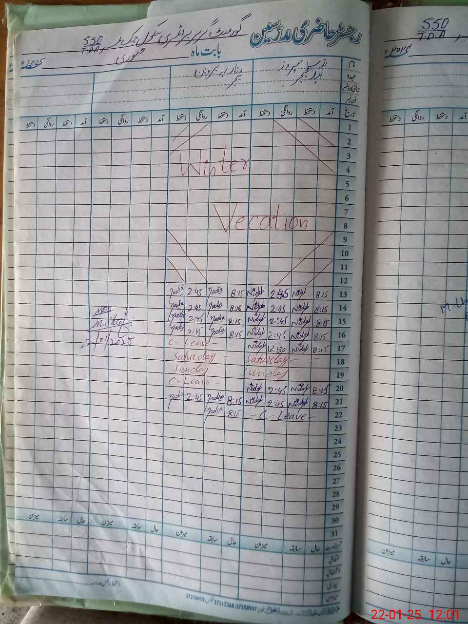 | CNIC | Full Name | Designation | R/C | Absence During Last Calender Month |