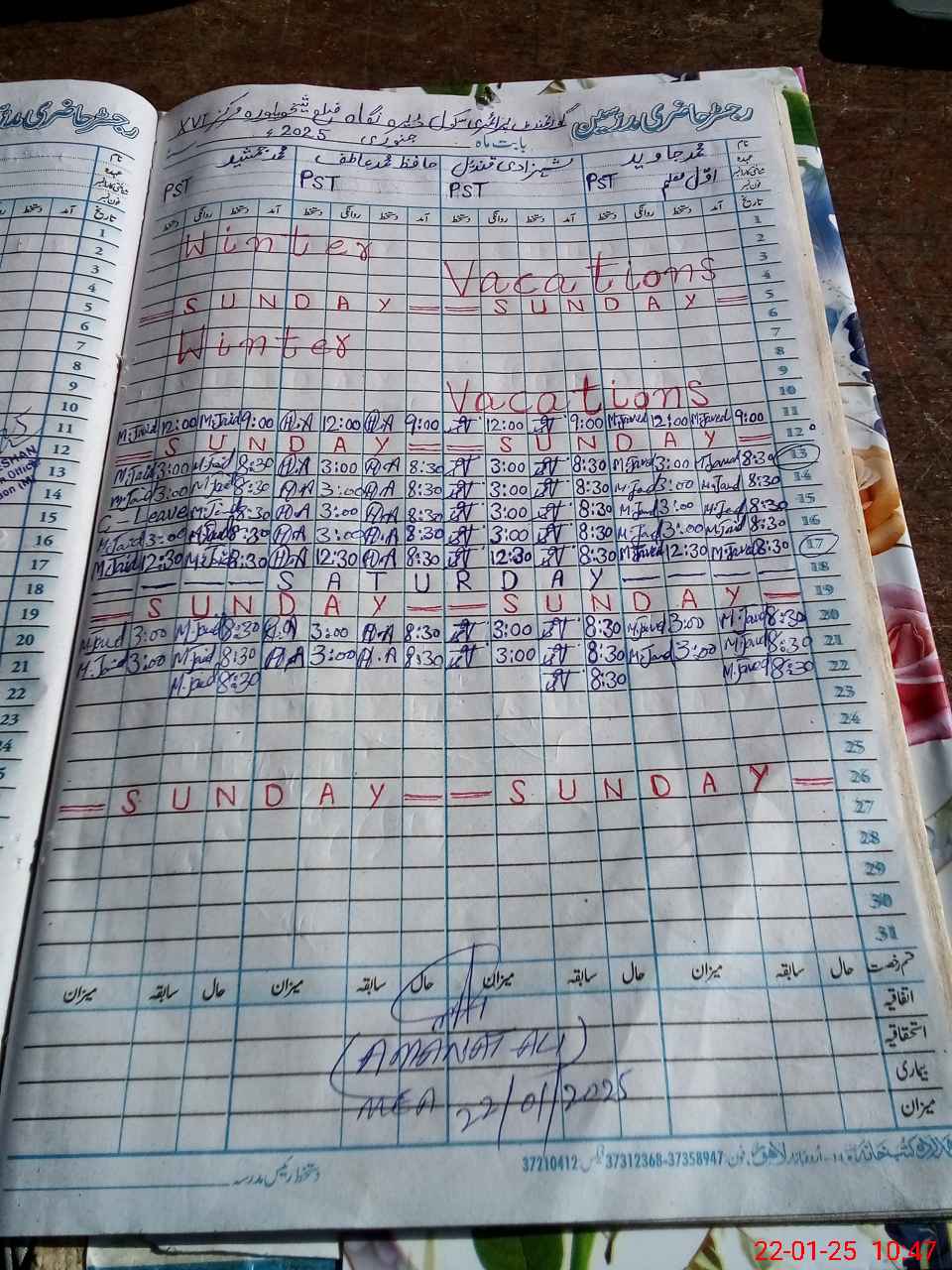 | Name: MU**** JA**** Designation: (School Headmaster's/Headmistress's) PST Phone/Cell Number: 03**** |