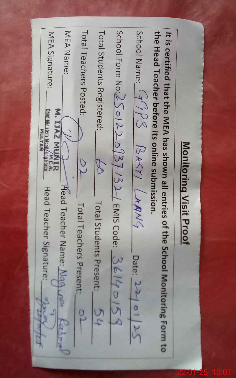 | EMIS Code: 36140159 | Name of School: GGPS BASTI LONG TEH. JALALPUR PIRWALA | |||