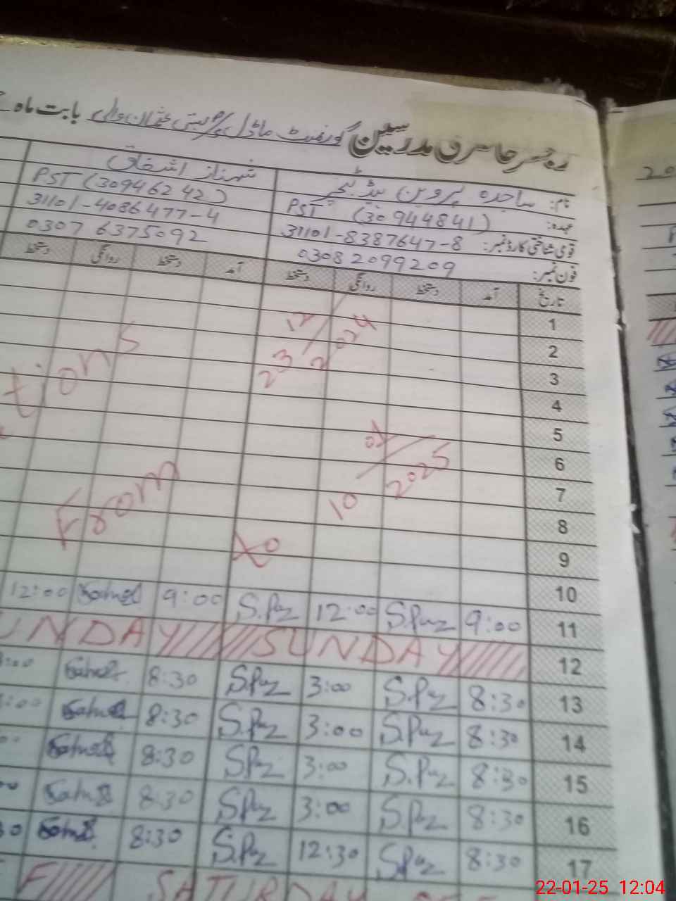 | Name: SA**** PE**** Designation: (School Headmaster's/Headmistress's) PST Phone/Cell Number: 03**** |