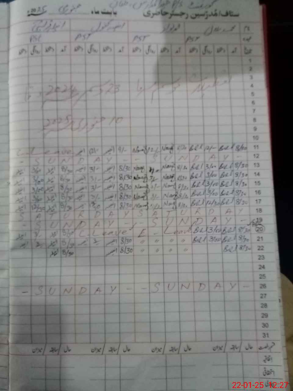 | CNIC | Full Name | Designation | R/C | Absence During Last Calender Month |