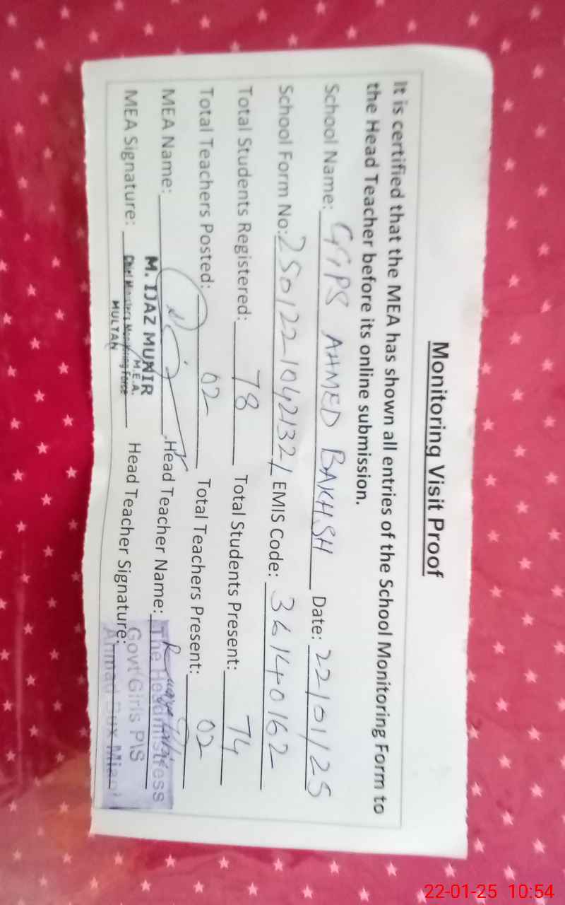 | EMIS Code: 36140162 | Name of School: GGPS AHMAD BUKHSH MIANI JALALPUR PIRWALA | |||