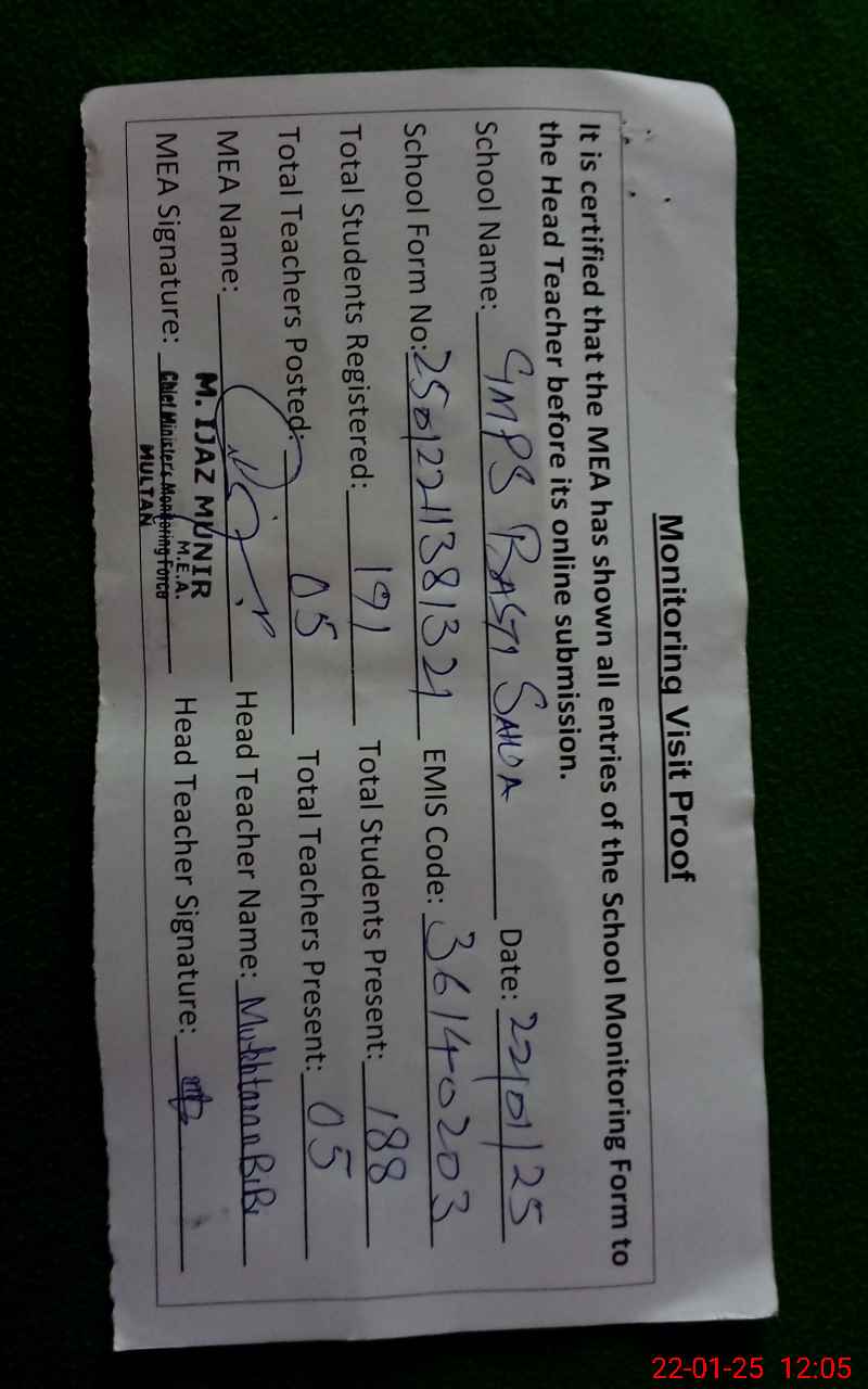 | Certified that this School was Inspected by the Undersigned MEA/DMO Today and the Information Stated Above is as Per Record. | |||||