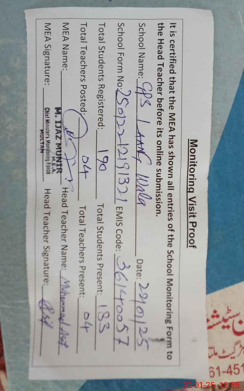 | EMIS Code: 36140057 | Name of School: GPS LAANG WALA JALALPUR | |||