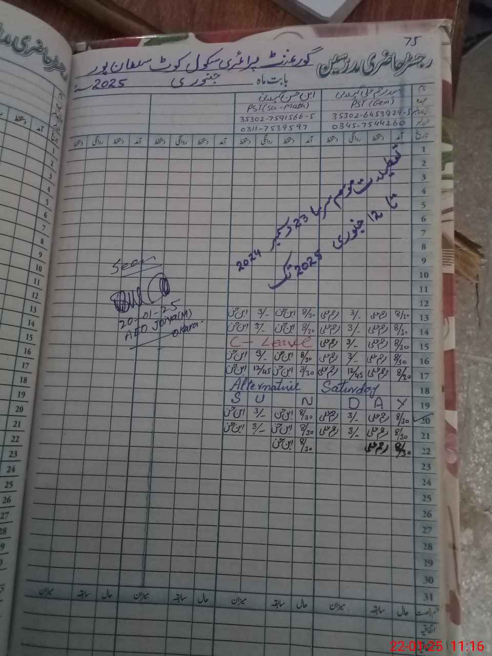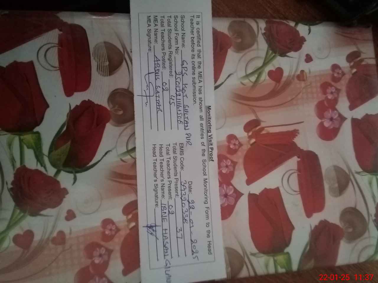 | EMIS Code: 39320338 | Name of School: GPS KOT SULTAN PUR | |||