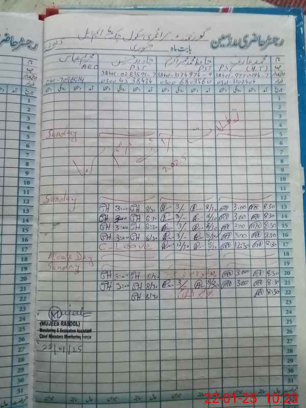 | Name: Mu**** Ar**** Designation: (School Headmaster's/Headmistress's) ESE (Arts) Phone/Cell Number: 03**** |