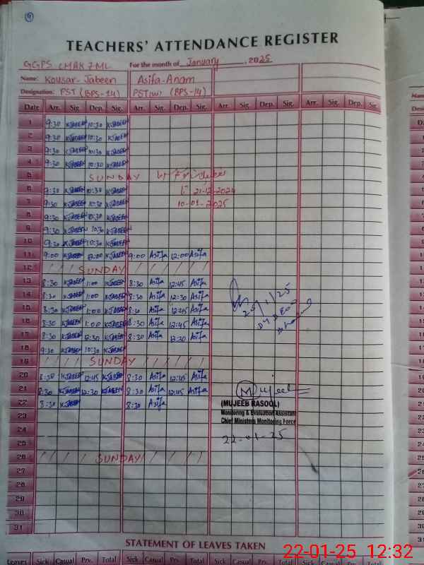 | Name: As**** An**** Designation: (School Headmaster's/Headmistress's) PST Phone/Cell Number: 03**** |