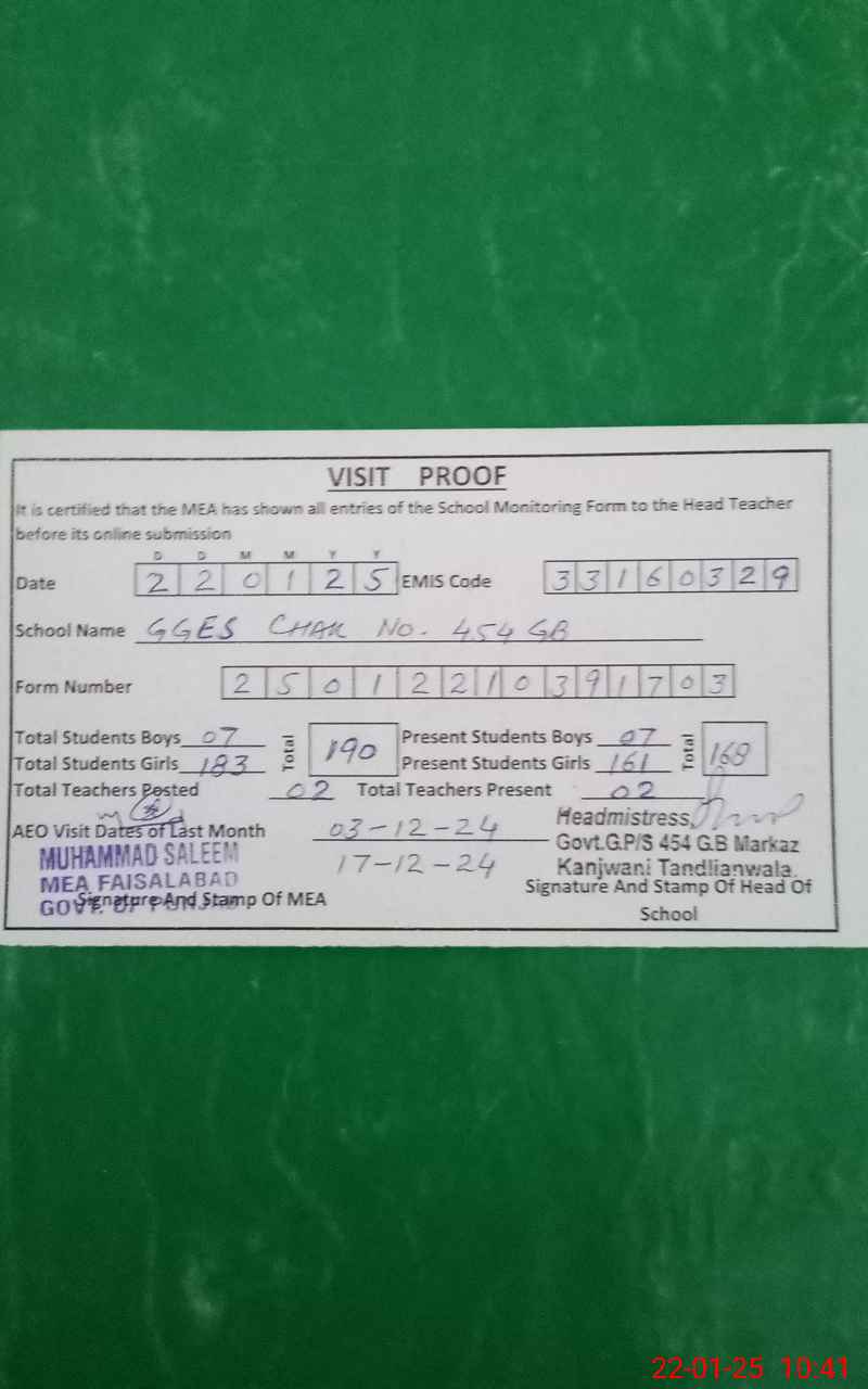 | EMIS Code: 33160329 | Name of School: GGES 454/GB | |||