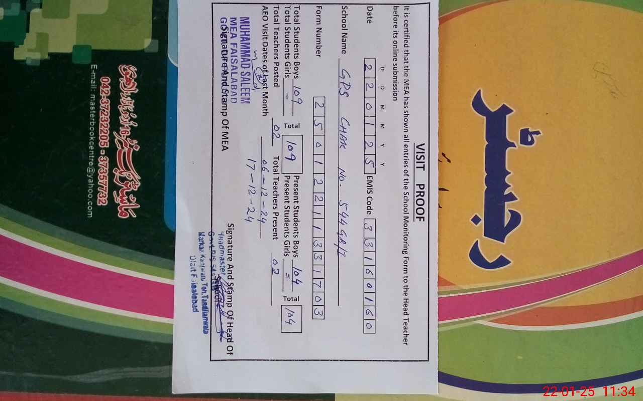 | Attendance Register | Head Teacher | MEA with School | Visit Proof |