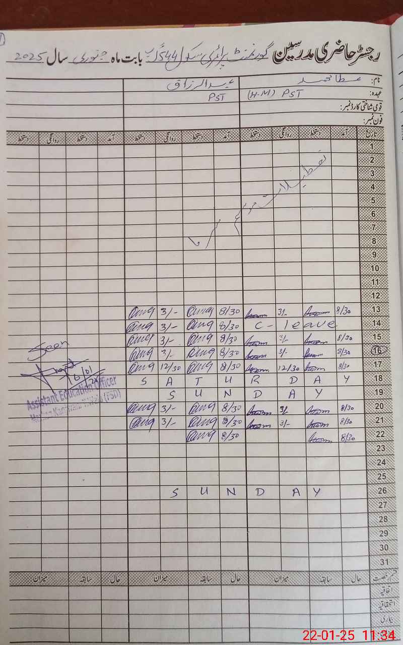 | Name: AT**** MU**** Designation: (School Headmaster's/Headmistress's) PST Phone/Cell Number: 03**** |