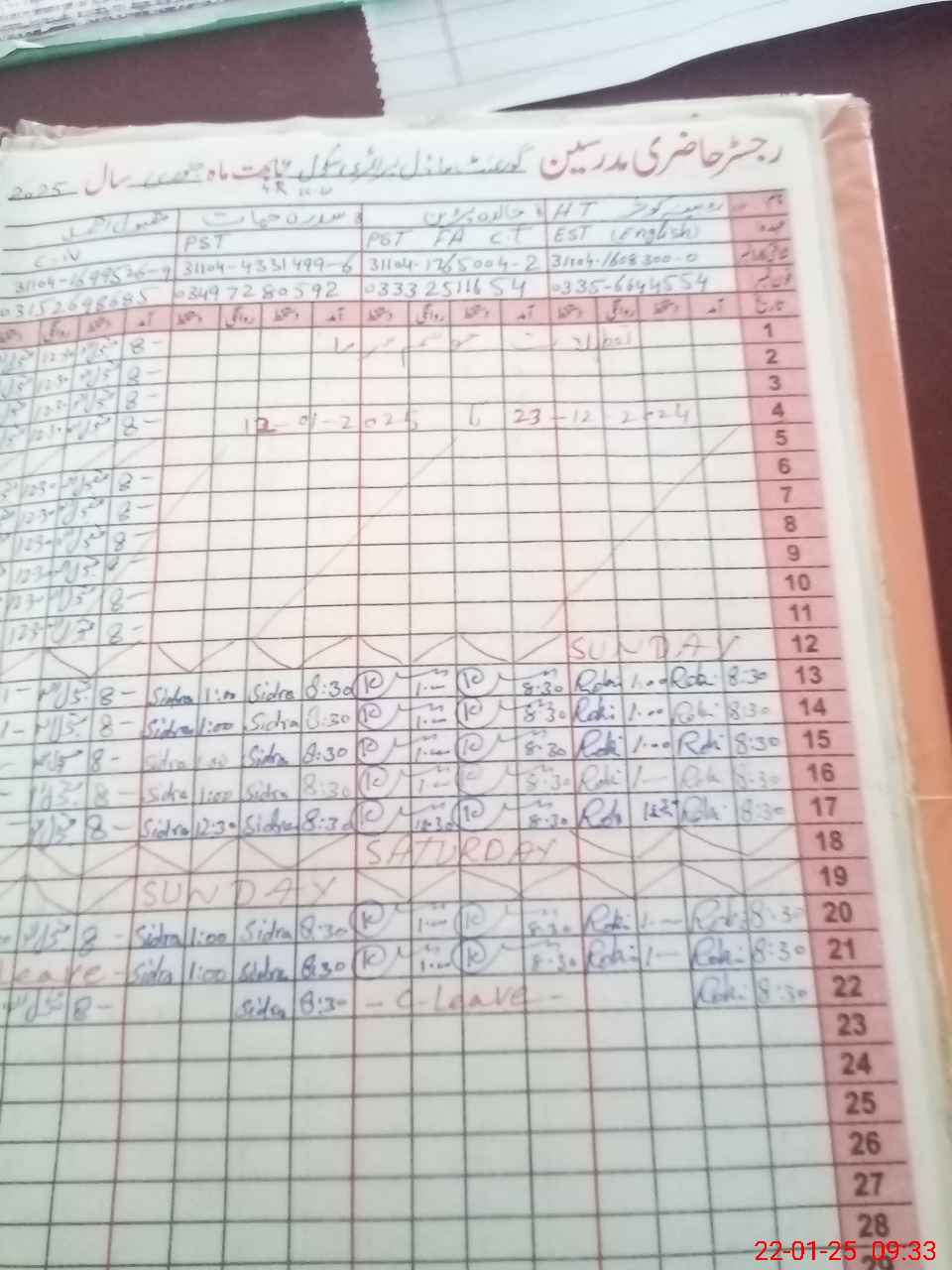 | CNIC | Full Name | Designation | R/C | Absence During Last Calender Month |