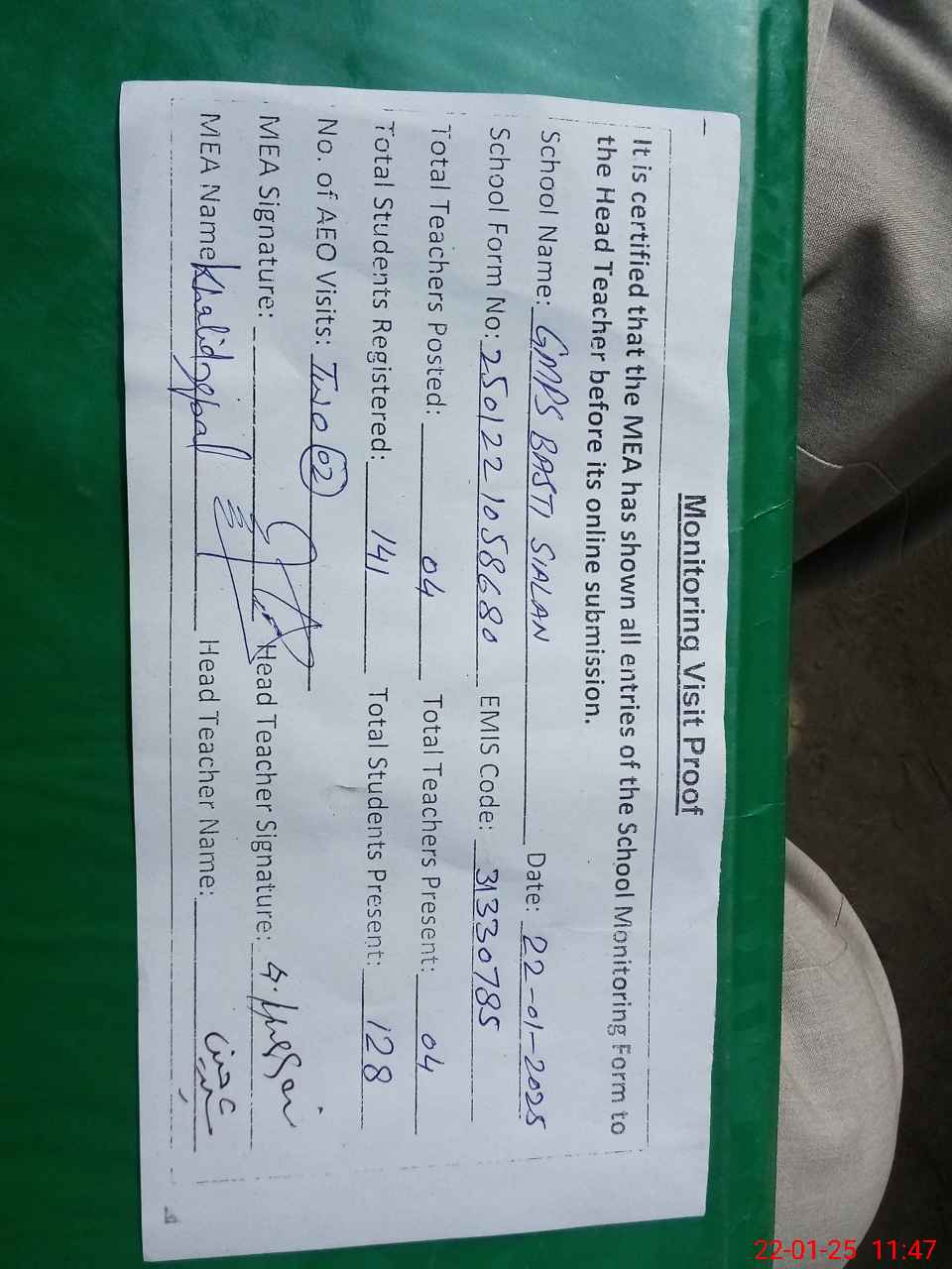 | EMIS Code: 31330785 | Name of School: GMPS BASTI SIALAN | |||