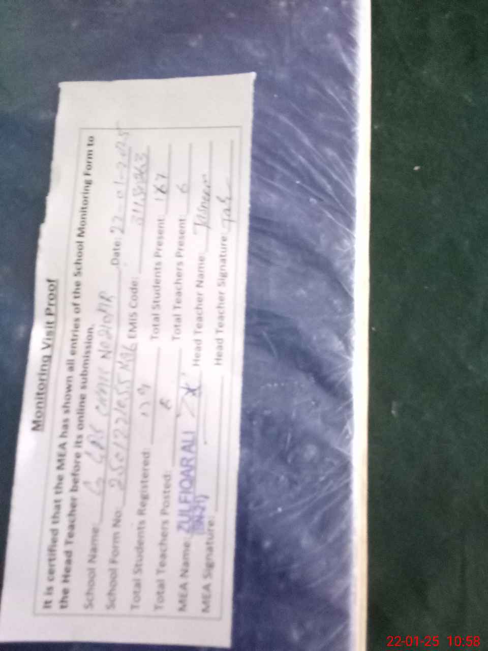| Attendance Register | Head Teacher | MEA with School | Visit Proof |