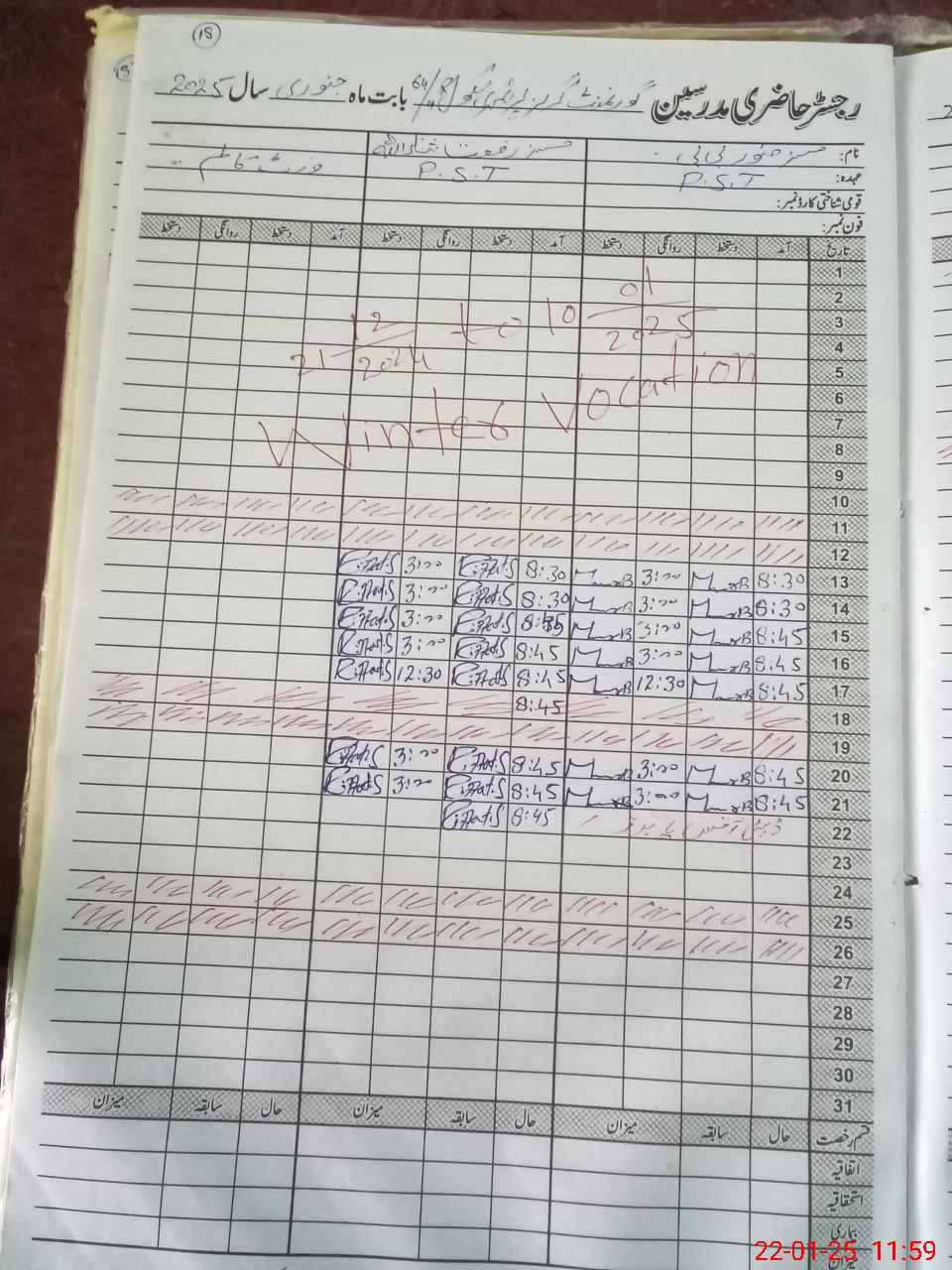 | 31**** | Mu**** Bi**** | PST | Temporary | 0 | 1 | 0 | 0 | 0 | 0 | 0 | 0 | 0 | Absent (Un-Authorized) |
