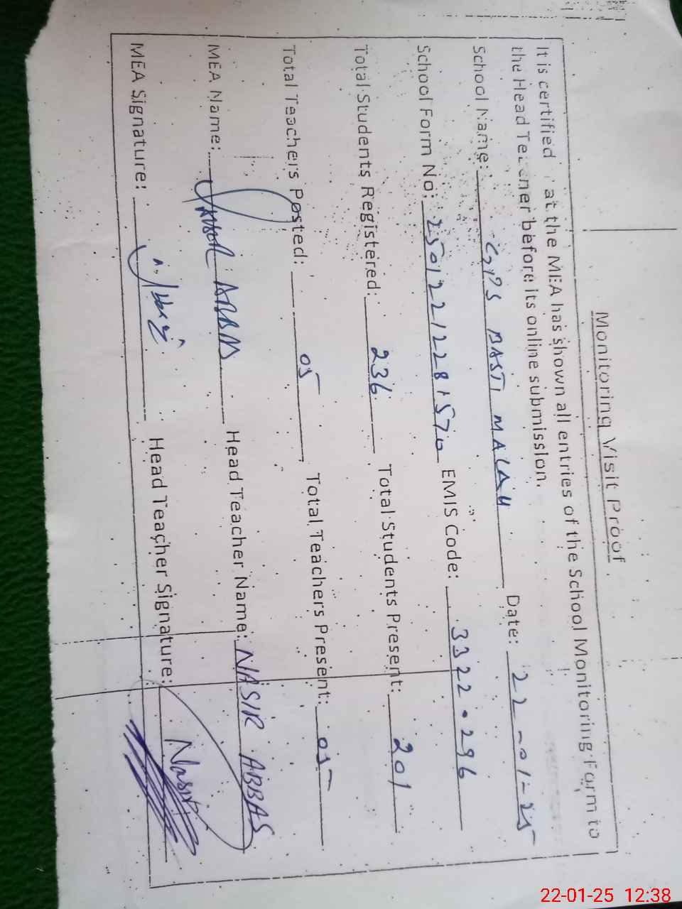 | Certified that this School was Inspected by the Undersigned MEA/DMO Today and the Information Stated Above is as Per Record. | |||||